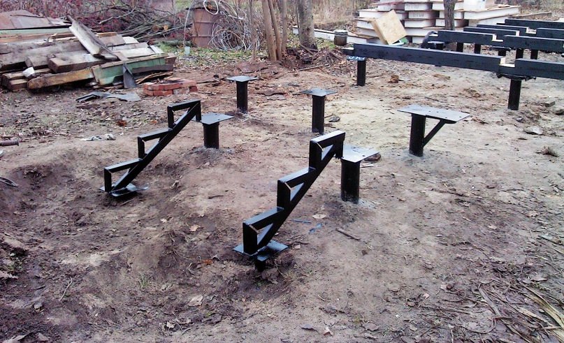 Комплект свай для свайно-винтового фундамента вкручивают вручную или при помощи спецтехники в размеченных местах.